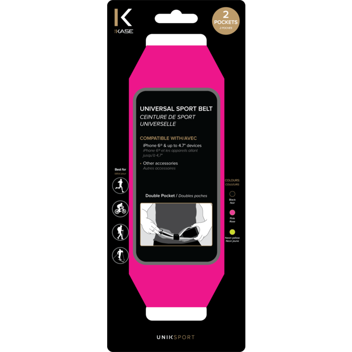 La ceinture de Sport Universelle à 2 poches est idéale pour l’entraînement en intérieur comme en extérieur. La pochette pour smartphone possède un écran de protection transparent pour une navigation facile et un trou pour câble d''écouteurs. De plus, la pochette extensible pour vos clefs et accessoires et la ceinture ajustable jusqu''à 100 cm vous assurent une utilisation confortable et une liberté de mouvement optimale. Les rétro réflecteurs vous assure une visibilité et une sécurité même en situation de basse lumière. Son matériau étanche, protégera votre smartphone et vos effets personnels en toutes situations. Idéal pour les amoureux du sport tout terrain!