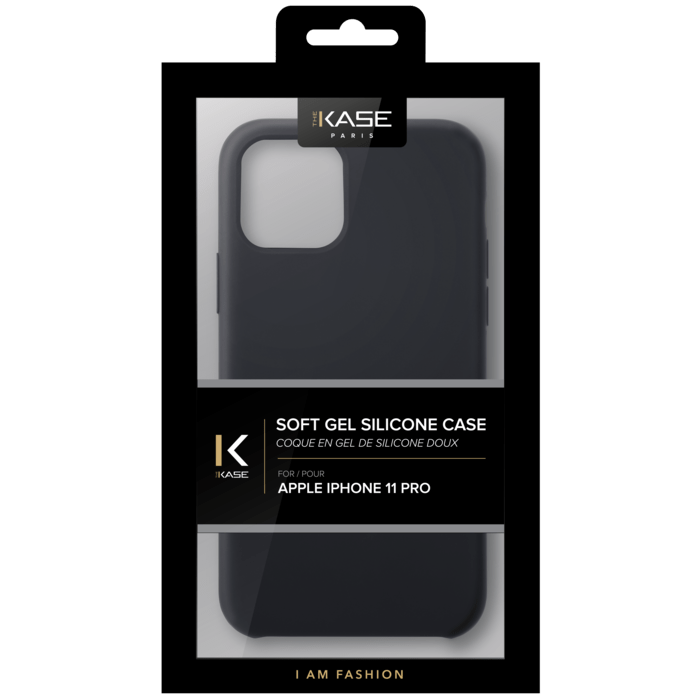 Coque antichoc en gel de silicone doux pour Apple  iPhone 11 Pro, Noir satin