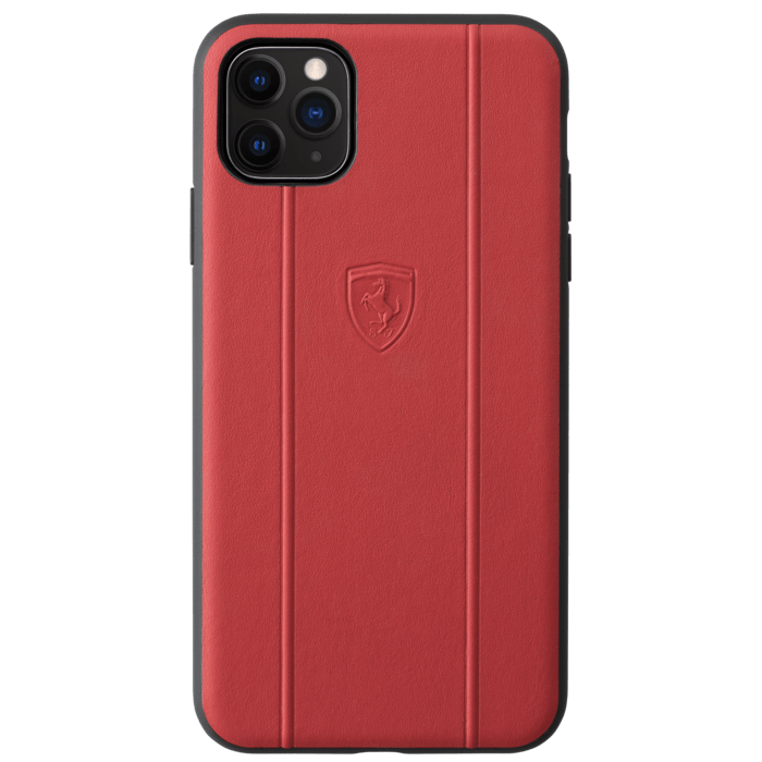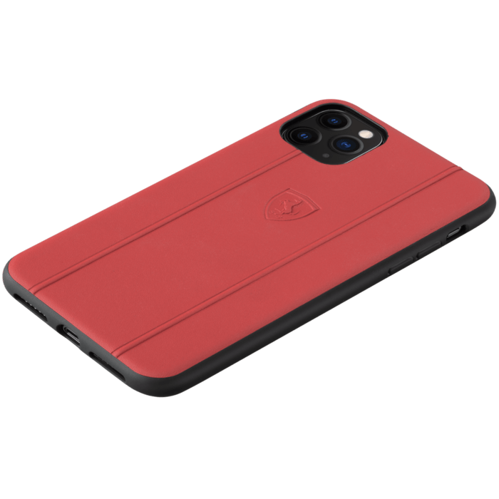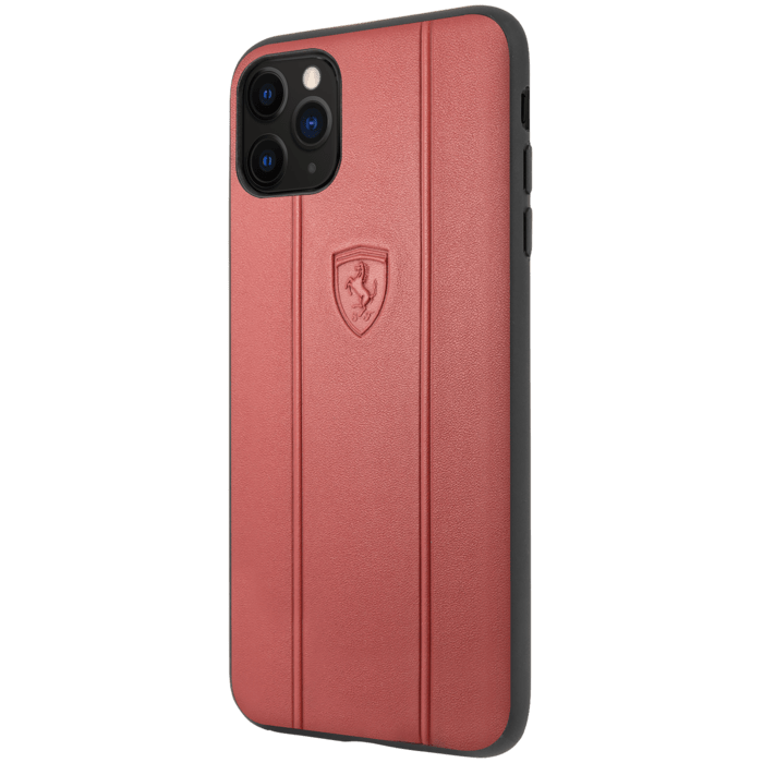 Coque Ferrari Off Track en cuir véritable pour Apple iPhone 11 Pro Max, Rouge