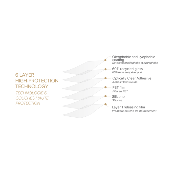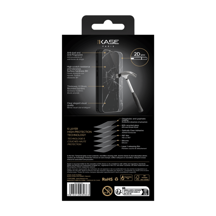 Le protecteur d’écran en verre trempé recyclé à 60% pour Apple iPhone, est conçue pour protéger votre appareil des éraflures et des traces de doigts, tout en préservant une grande clarté de vision. Elle est composée de 6 couches de protection le rendant plus résistant aux chocs quotidien. Offrez vous une protection à toutes épreuves !