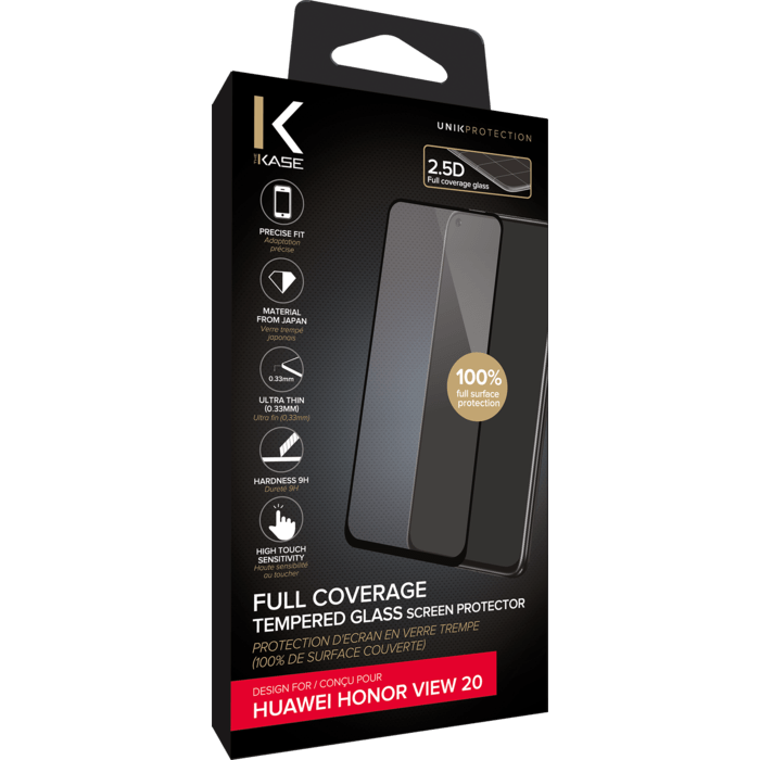 Protection d'écran en verre trempé (100% de surface couverte) pour Huawei Honor View 20, Noir