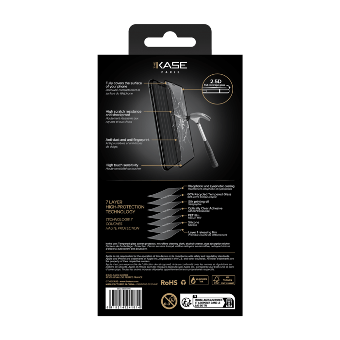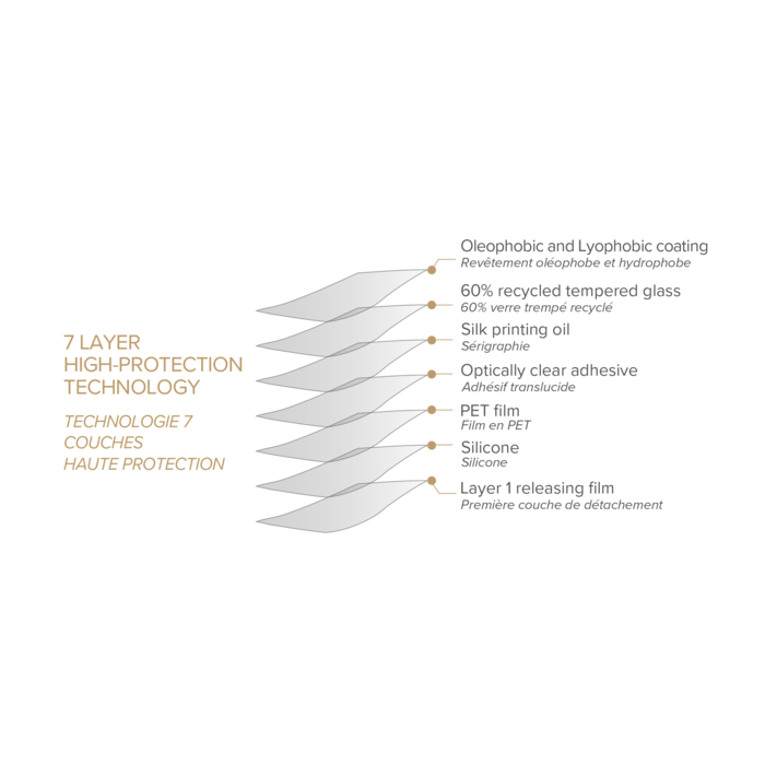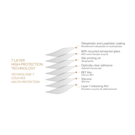 La protection d’écran en verre trempé (60% Verre Trempe Recyclé) adopte la technologie de protection à 7 couches pour protéger votre appareil des éraflures et des traces de doigts, tout en préservant une grande clarté de vision. Son ajustement précis protège 100% de la surface de votre téléphone tout en préservant son aspect d'origine. Pour l'installation : décollez simplement la couche de protection qui adhérera automatiquement à votre écran, après l'avoir aligné.