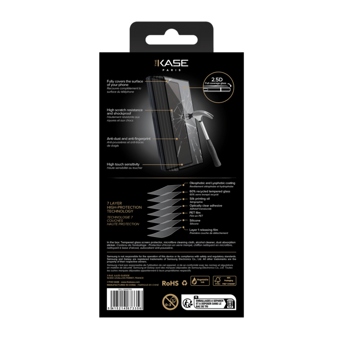 La protection d’écran en verre trempé (60% Verre Trempe Recyclé) adopte la technologie de protection à 7 couches pour protéger votre appareil des éraflures et des traces de doigts, tout en préservant une grande clarté de vision. Son ajustement précis protège 100% de la surface de votre téléphone tout en préservant son aspect d'origine. Pour l'installation : décollez simplement la couche de protection qui adhérera automatiquement à votre écran, après l'avoir aligné.