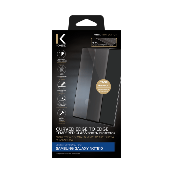 Cette protection d'écran Bord à Bord Incurvé, adopte la dernière technologie de pointe encore jamais réalisée en matière de protection pour smartphone, en fusionnant un verre résistant dans un moule au design incurvé. Elle recouvre votre écran sur tous les bords et offre ainsi une résistance optimale à votre appareil. 100% d'adhérence, l'écran de protection reste sensible à la pression de toutes les touches de votre appareil. Cette protection d'écran délivre simplement la protection UNIK que vous exigez. Pour l'installation : décollez simplement la couche de protection qui adhérera automatiquement à votre écran après l'avoir aligné.
