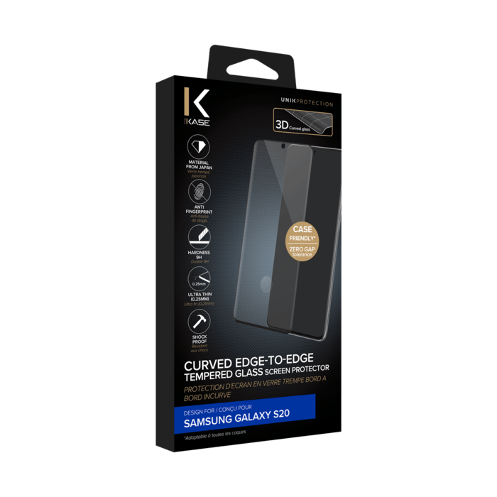 Cette protection d'écran Bord à Bord Incurvé, adopte la dernière technologie de pointe encore jamais réalisée en matière de protection pour smartphone, en fusionnant un verre résistant dans un moule au design incurvé. Elle recouvre votre écran sur tous les bords et offre ainsi une résistance optimale à votre appareil. 100% d'adhérence, l'écran de protection reste sensible à la pression de toutes les touches de votre appareil. Cette protection d'écran délivre simplement la protection UNIK que vous exigez. Pour l'installation : décollez simplement la couche de protection qui adhérera automatiquement à votre écran après l'avoir aligné.