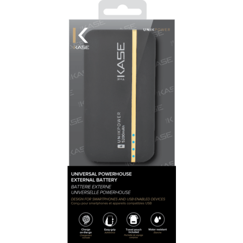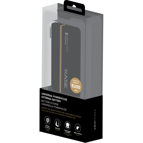 Universal PowerHouse is simply designed, with an accented gold bar, to offer you a classy experience. It is your perfect companion while on-the-go. With 1 Amp charging port, it delivers an optimal solution to your power-hungry smartphones.Product specifications:Battery type: Samsung Li-ion BatteryInput: Micro USB 5V DC/1AOutput: USB 5V DC/1ACapacity: 5200mAhCharging time: approx. 6 hoursWith your Apple iPhone 6 Plus (2915 mAh), you can have up to 170% extra battery. With your Apple iPhone 6 (1 810 mAh), you can have up to 280% extra battery. With your Apple iPhone 5/5S (1 440 mAh), you can have up to 360% extra battery. With your Samsung Galaxy S6 (2550 mAh), you can have up to 200% extra battery.
